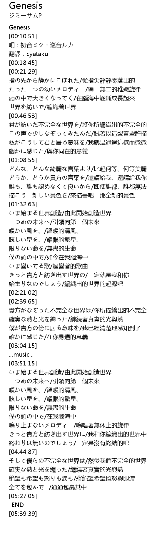 | [03:53.15] | いま始まる世界創造/由此開始創造世界 |