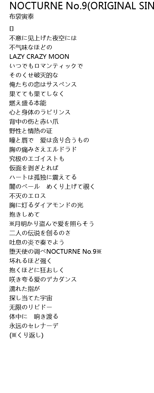 | Song | NOCTURNE No.9(ORIGINAL SINGLE VERSION) |
