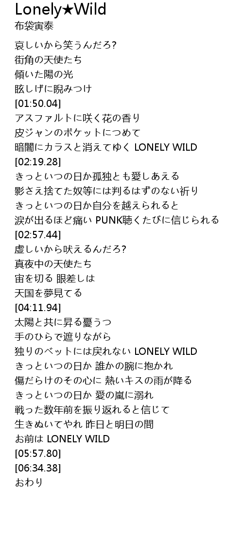 | [04:28.67] | 独りのベットには戻れない LONELY WILD |