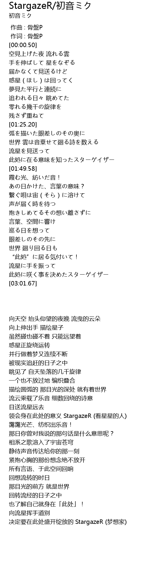 | [01:41.81] | 此処に在る意味を知ったスターゲイザー |