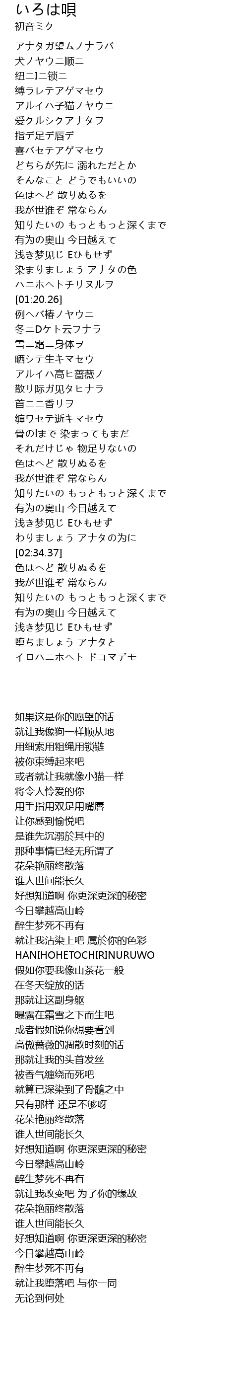| [03:27.57] | イロハニホヘト ドコマデモ |