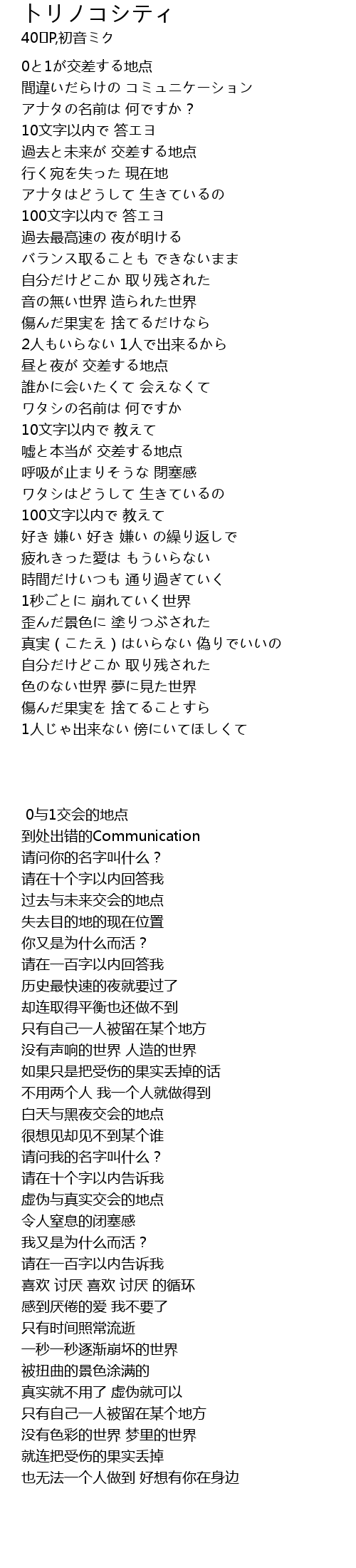 | [01:47.570] | 嘘と本当が 交差する地点 |
