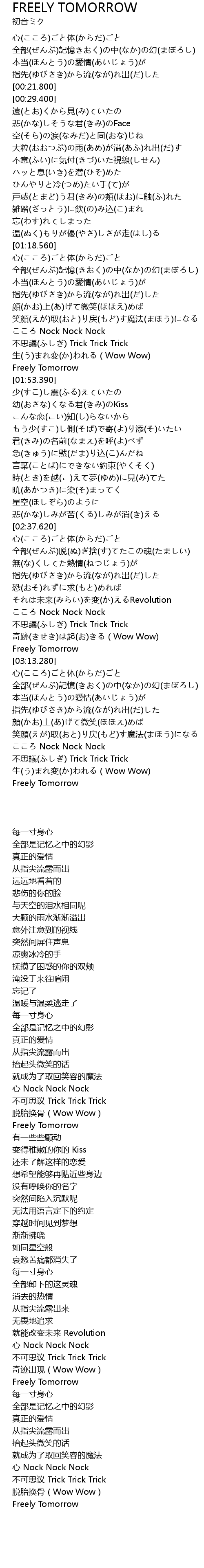 | [01:44.710] | 不思議(ふしぎ) Trick Trick Trick |
