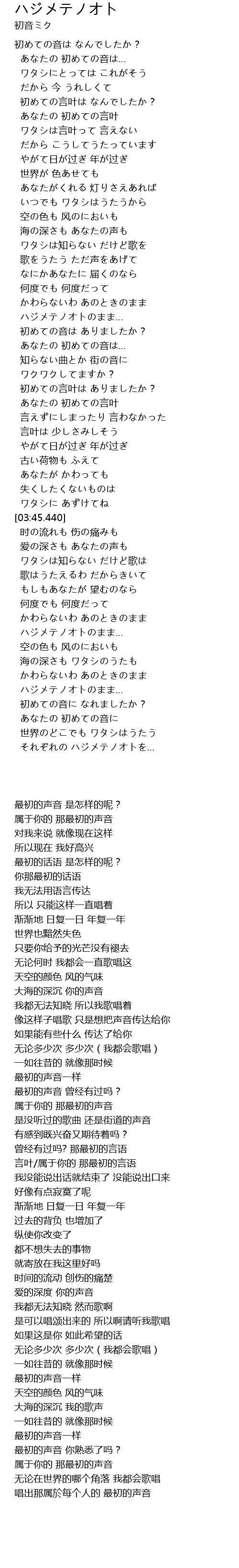 | [03:07.970] | あなたの 初めての言叶 |