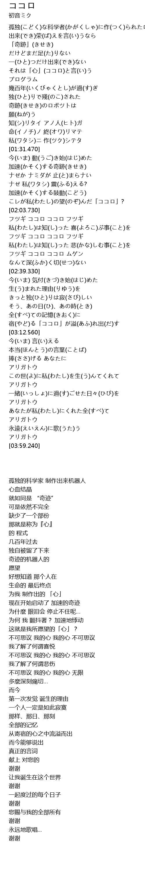 | [02:17.560] | フツギ ココロ ココロ フツギ |