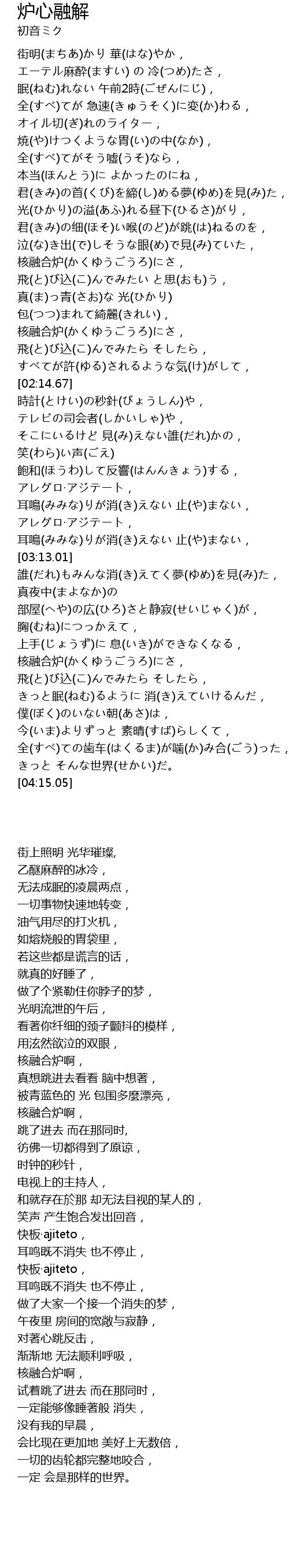| Song | 炉心融解 |