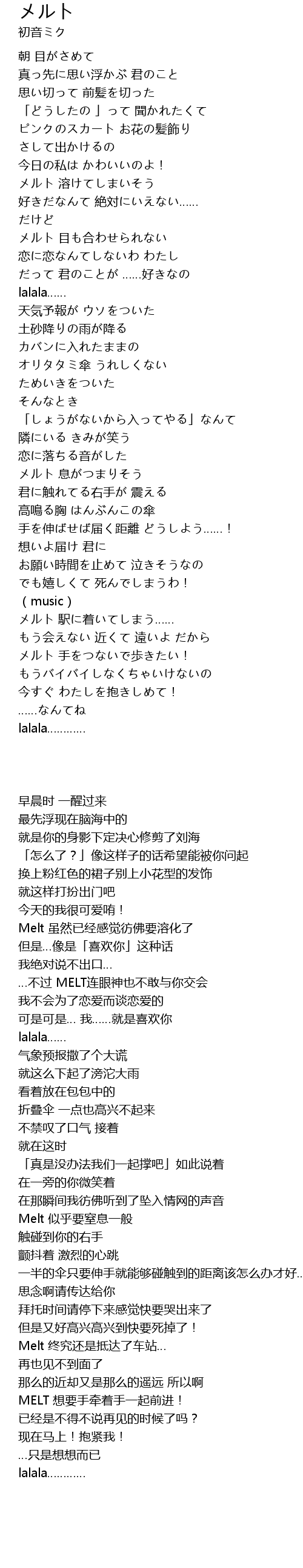 | [01:00.474] | メルト 溶けてしまいそう |