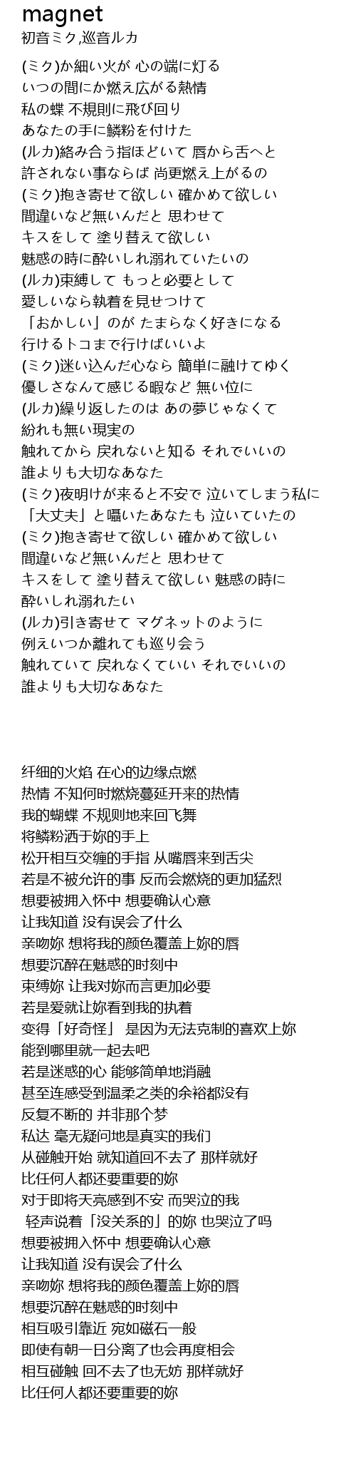 | [03:17.500] | (ルカ)引き寄せて マグネットのように |