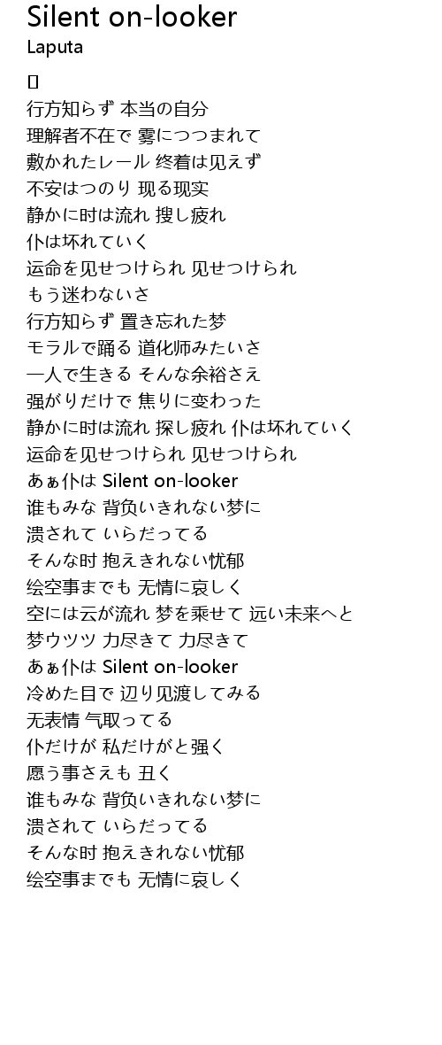 | 静かに时は流れ 探し疲れ 仆は坏れていく | |