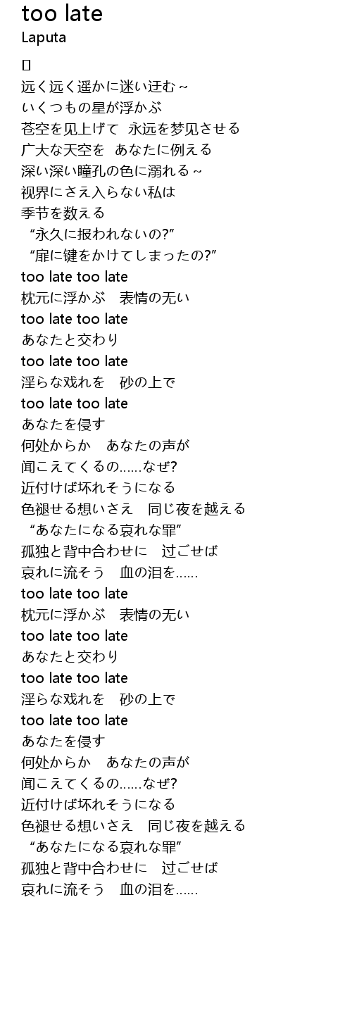 | too late too late | |