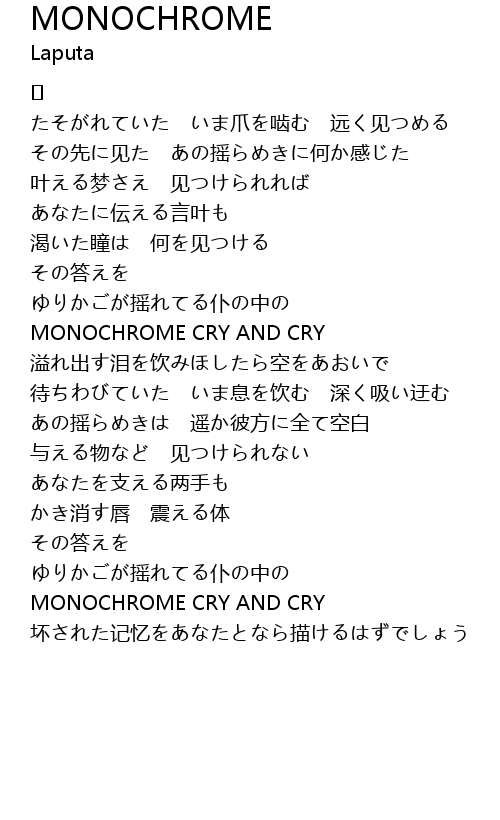| 溢れ出す泪を饮みほしたら空をあおいで | |