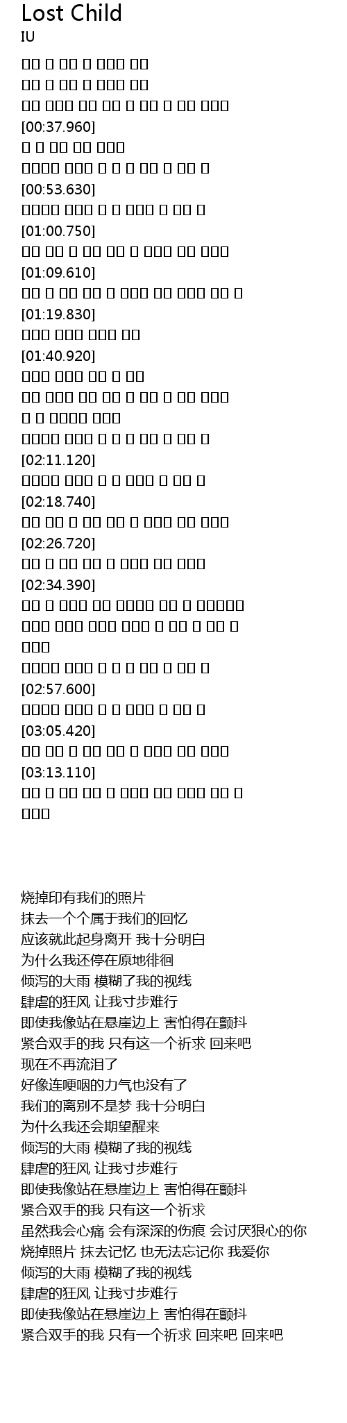 작은 두 손을 모은 내 기도는 하나 뿐이야 돌아 와 돌아와 |