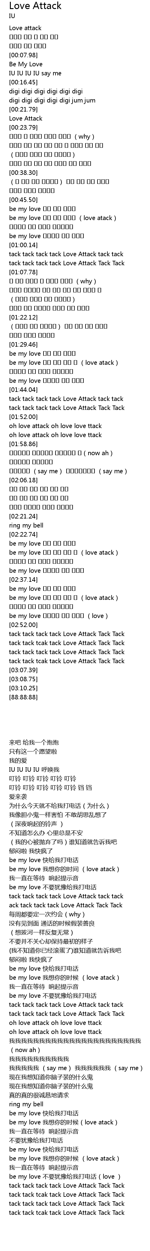 | [02:59.96] | tack tack tack tack Love Attack Tack Tack |