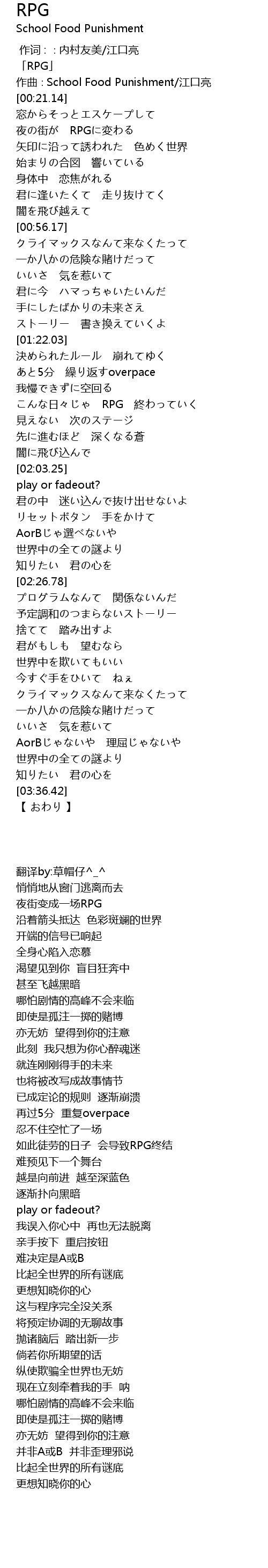 | [00:01.14] | 「RPG」 |