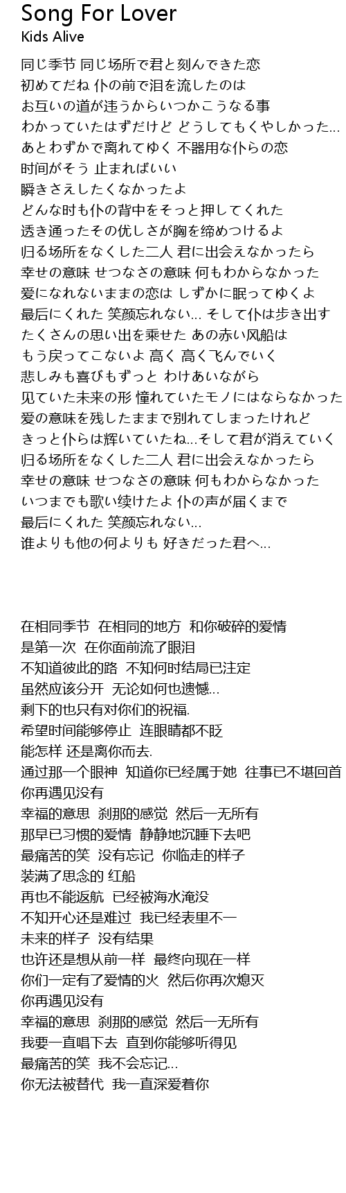 | [05:00.41] | 谁よりも他の何よりも 好きだった君へ… |
