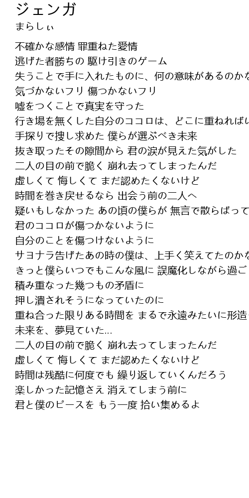 | 君と僕のピースを もう一度 拾い集めるよ |
