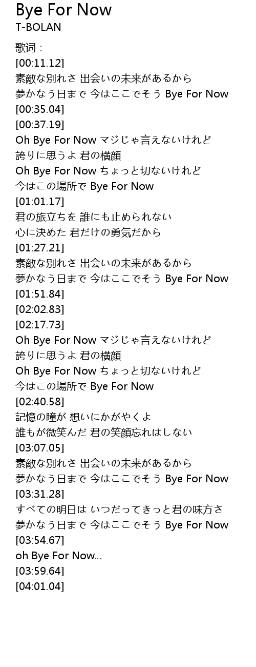 | [03:43.95] | 夢かなう日まで 今はここでそう Bye For Now |