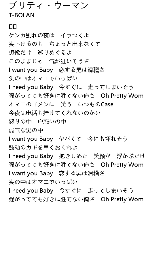 | 强がってても好きに胜てない俺さ Oh Pretty Woman | |