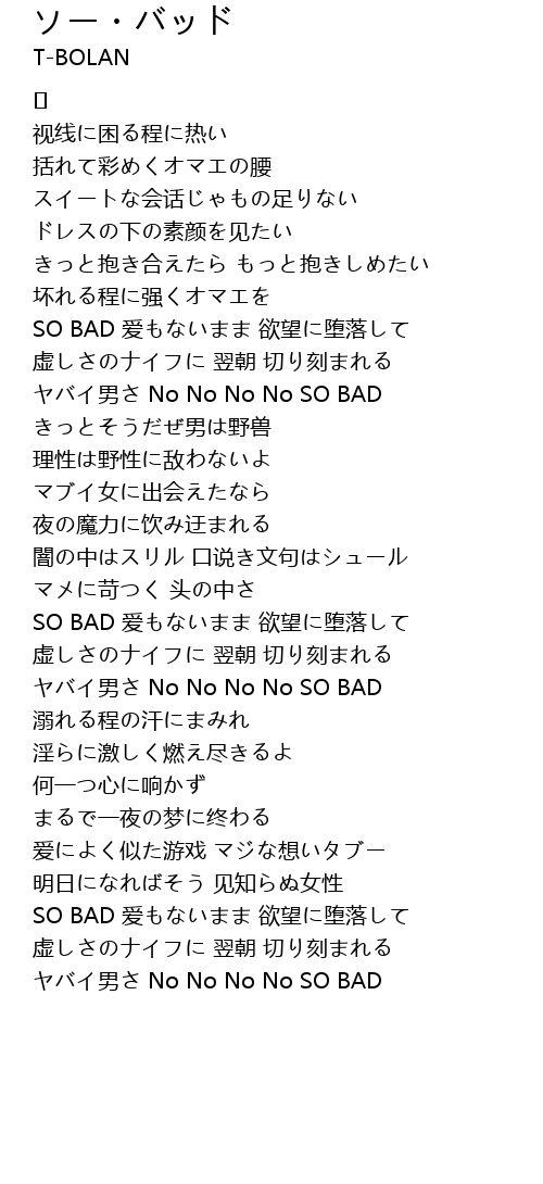 | ヤバイ男さ No No No No SO BAD |