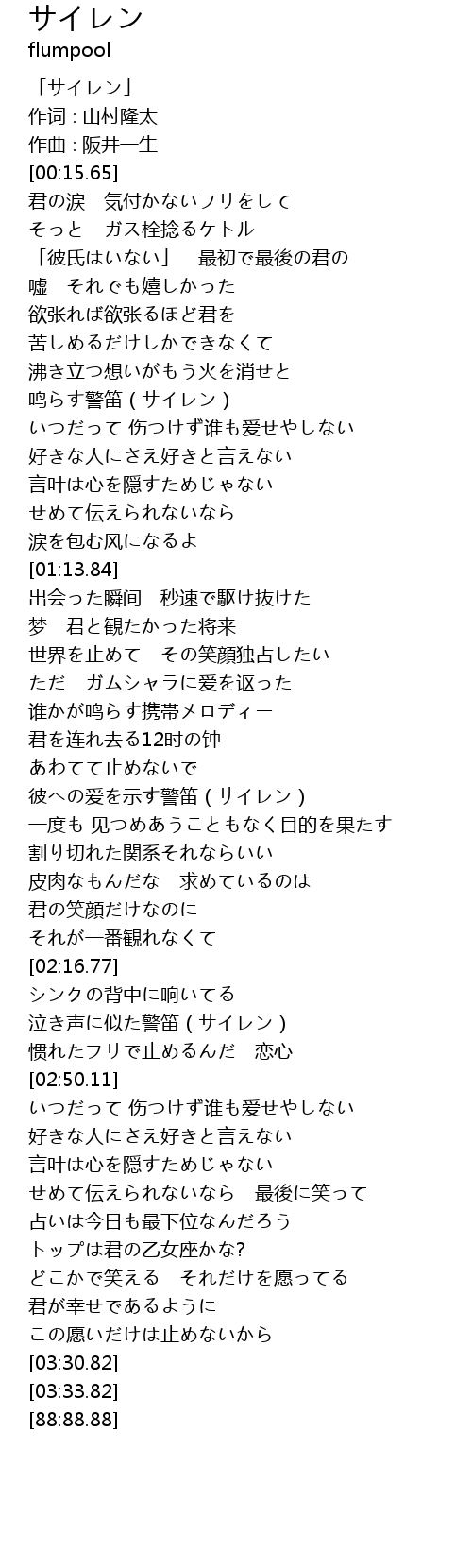 | [01:50.38] | 彼への爱を示す警笛(サイレン) |