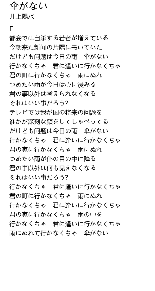 | 雨にぬれて行かなくちゃ 伞がない |