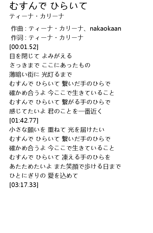 | [02:35.61] | むすんで ひらいて 凍える手のひらを |