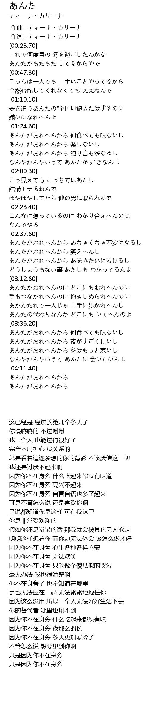 | [03:47.74] | あんたがおれへんから 冬はもっと寒いし |
