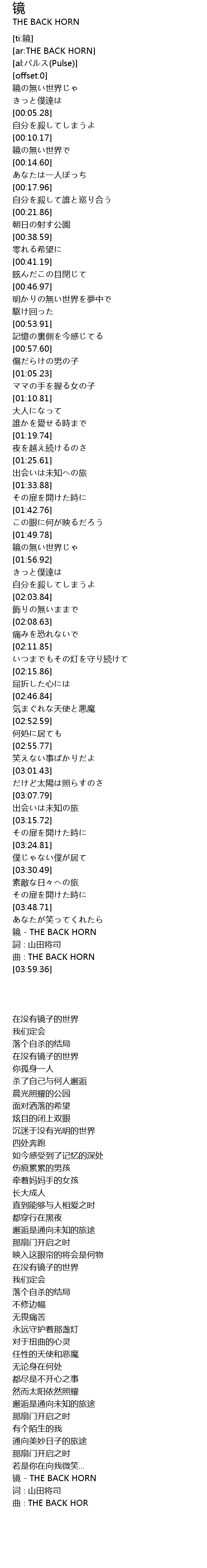 | [03:55.44] | 鏡 - THE BACK HORN |