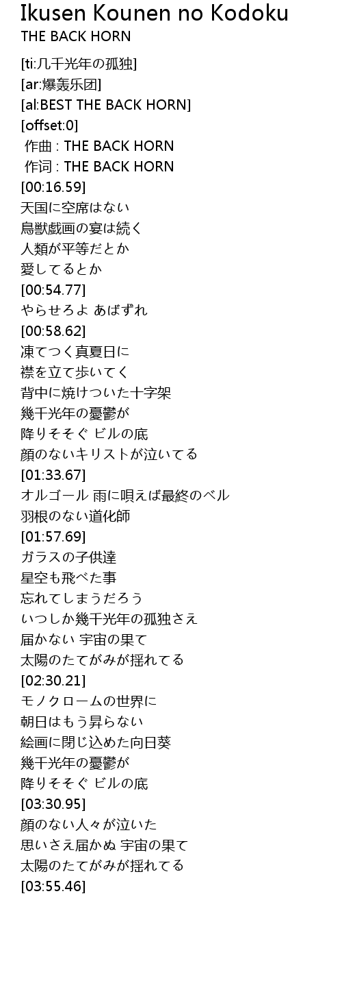 | [00:00.00] | 作曲 : THE BACK HORN |