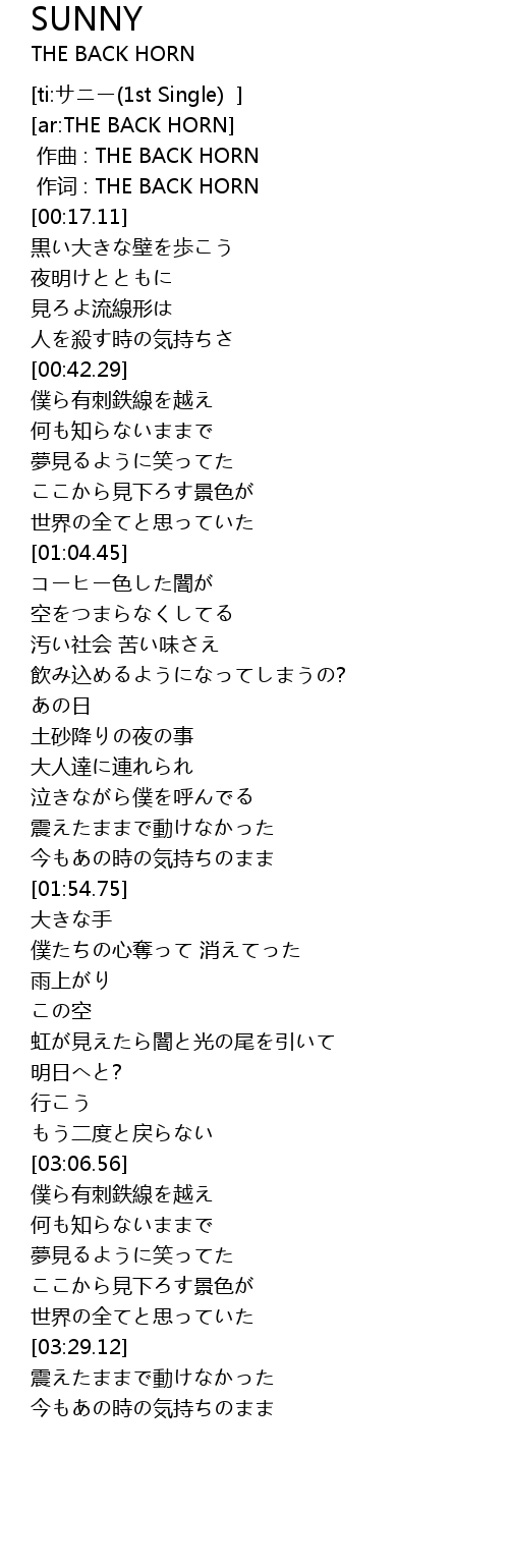 | [00:01.00] | 作词 : THE BACK HORN |