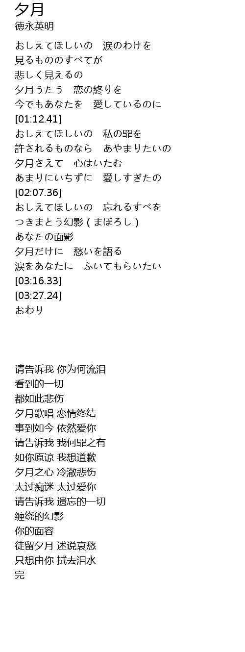 夕月だけに 愁いを語る |