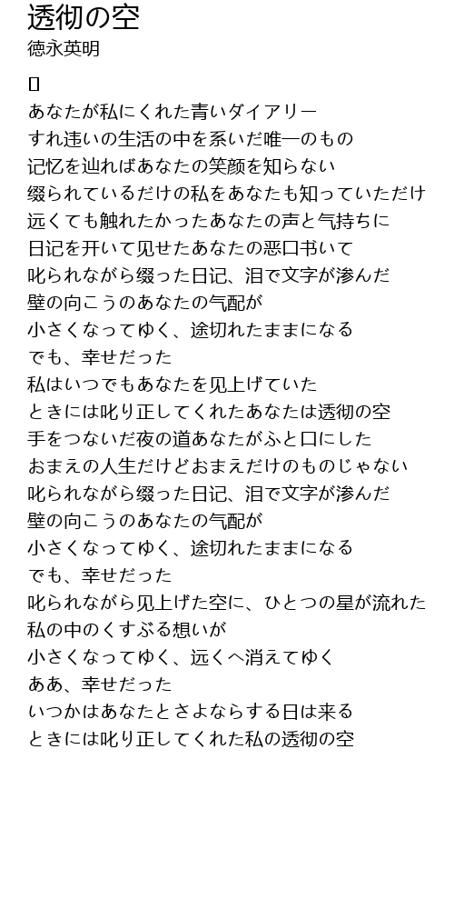 | ときには叱り正してくれたあなたは透彻の空 | |