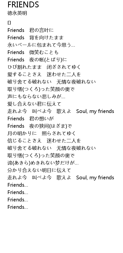 | 走れよ今 叫べよ今 歌えよ Soul, my friends | |