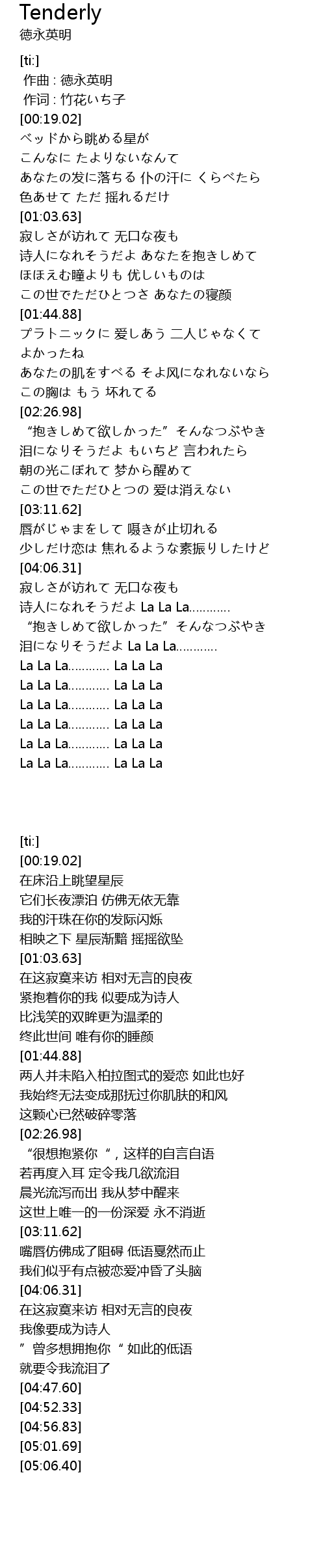 | [01:15.88] | 诗人になれそうだよ あなたを抱きしめて |