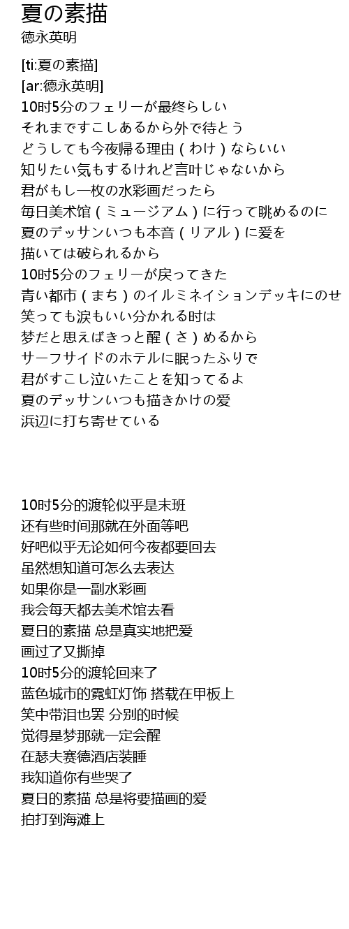| [03:33.846] | 夏のデッサンいつも描きかけの爱 |