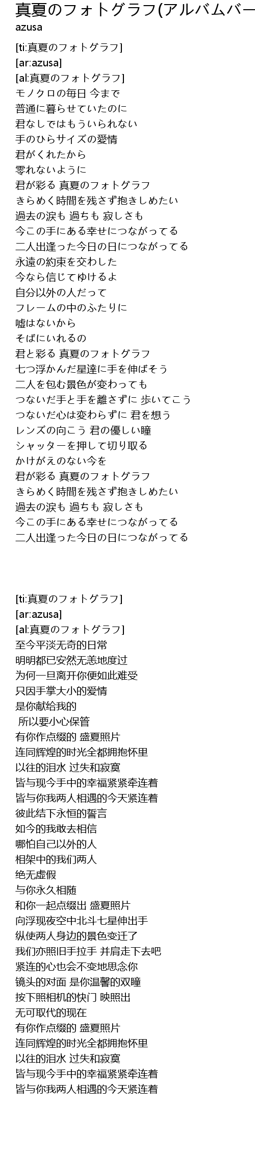 | [02:22.23] | 君と彩る 真夏のフォトグラフ |