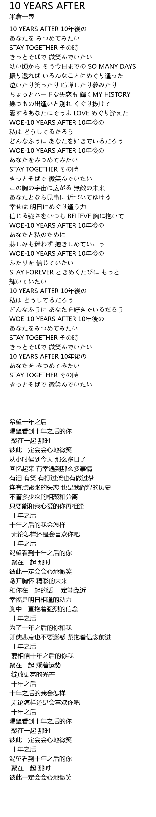 | [03:24.000] | 10 YEARS AFTER 10 nián hòu |