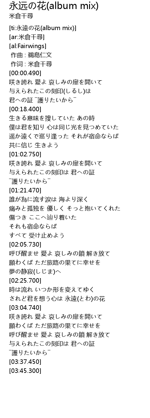 | [02:56.690] | されど君を想う心は 永遠(とわ)の花 |