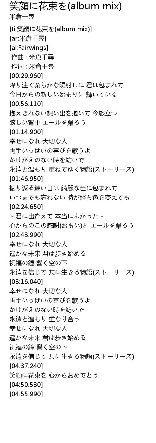 | [04:38.120] | 笑顔に花束を 心からおめでとう |