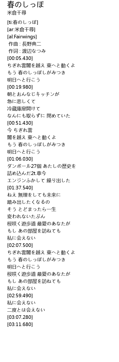 | [02:37.390] | もう 春のしっぽしがみつき |