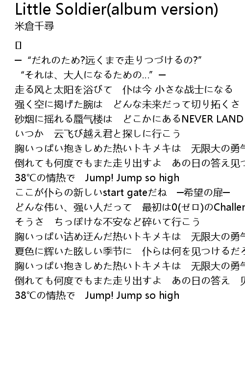 | 走る风と太阳を浴びて 仆は今 小さな战士になる | |
