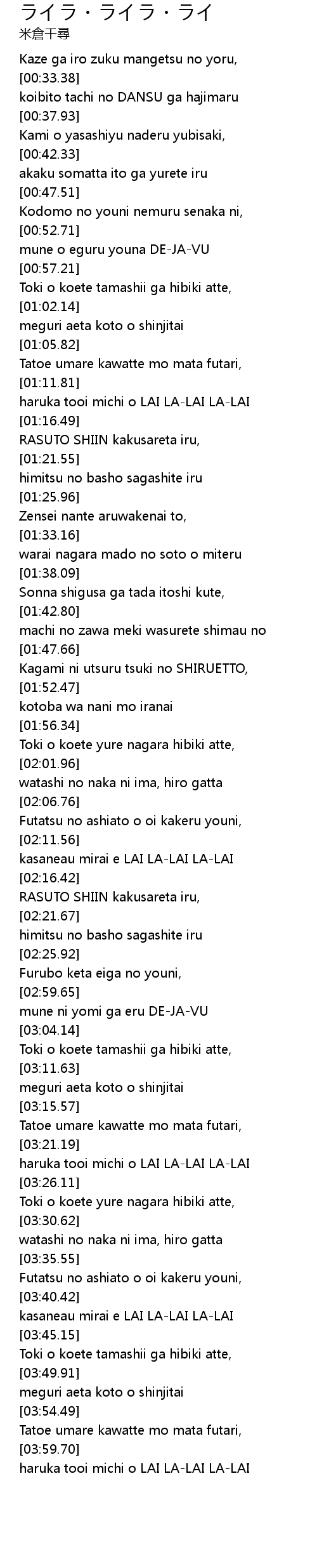 [02:12.56] kasaneau mirai e LAI LA-LAI LA-LAI