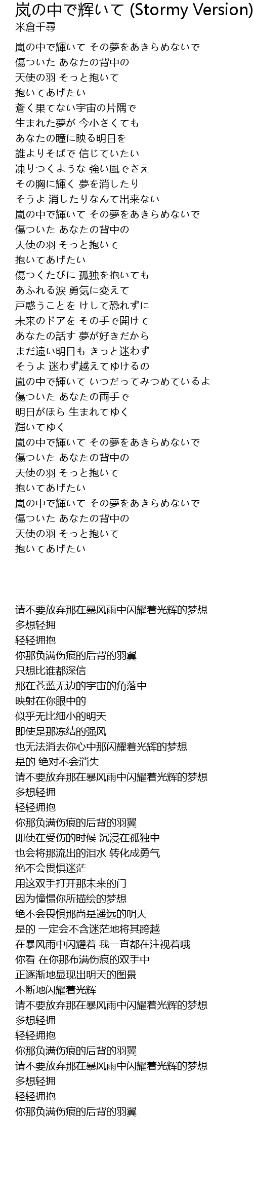 嵐の中で輝いて いつだってみつめているよ |