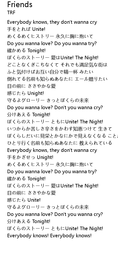 | Everybody knows, they don' t wanna cry | |