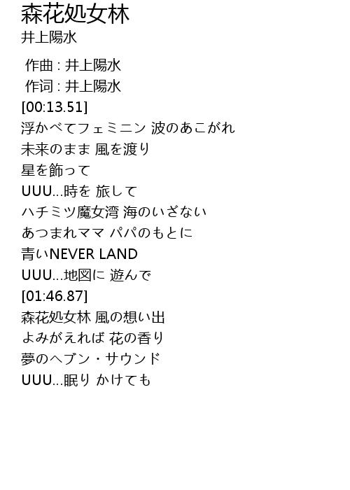 | [00:58.62] | ハチミツ魔女湾 海のいざない |
