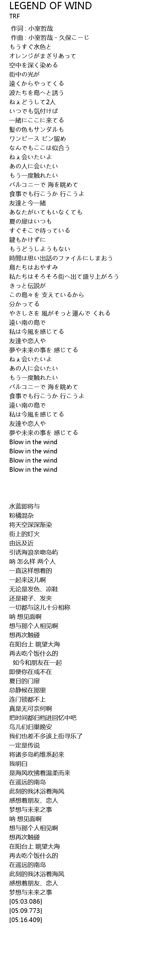 | [05:03.086] | Blow in the wind |