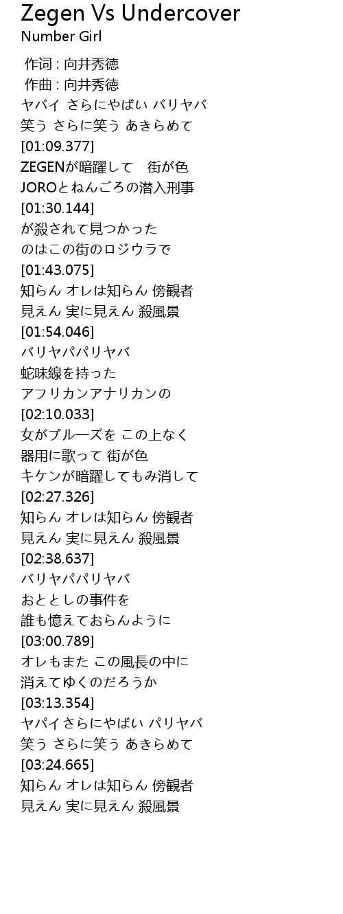 | [00:01.000] | 作曲 : 向井秀徳 |