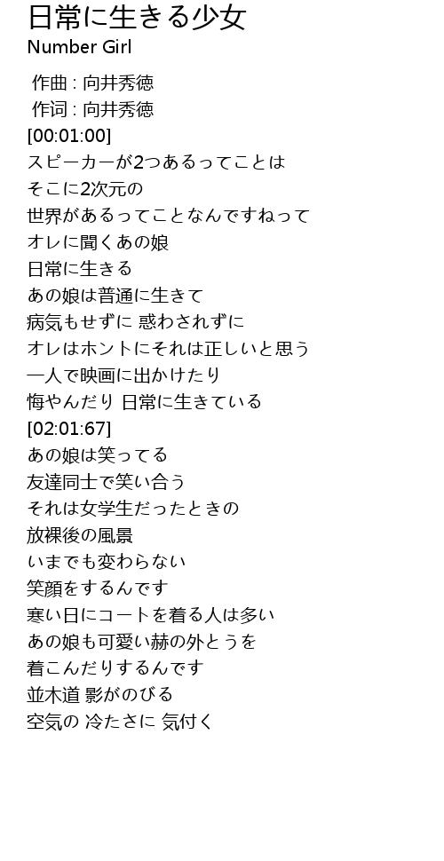 | [00:00.333] | 作词 : 向井秀徳 |