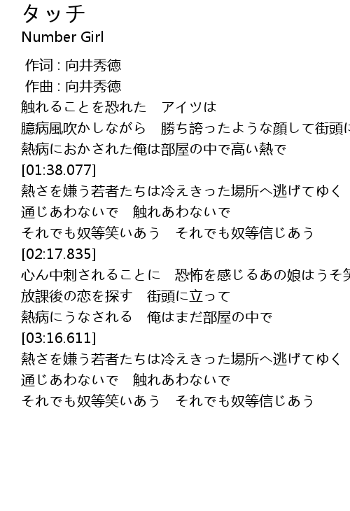 | [01:52.731] | 通じあわないで 触れあわないで |