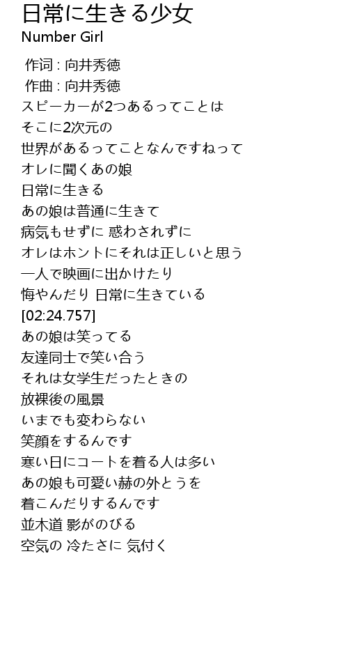 | [00:01.000] | 作曲 : 向井秀徳 |